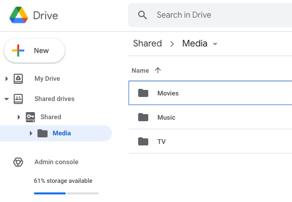 However, if your data is currently on My Drive and you want to keep it there, Saltbox works fine with that as well. Rather than littering the docs with "If you're using My Drive to this, Shared drives do that" decision points, we standardized on Shared Drives. You'll just need to skip some stuff that refers to shared drives.