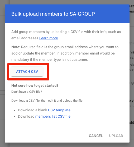 9. Click on "ATTACH CSV", and find the members.csv you downloaded a moment ago:
